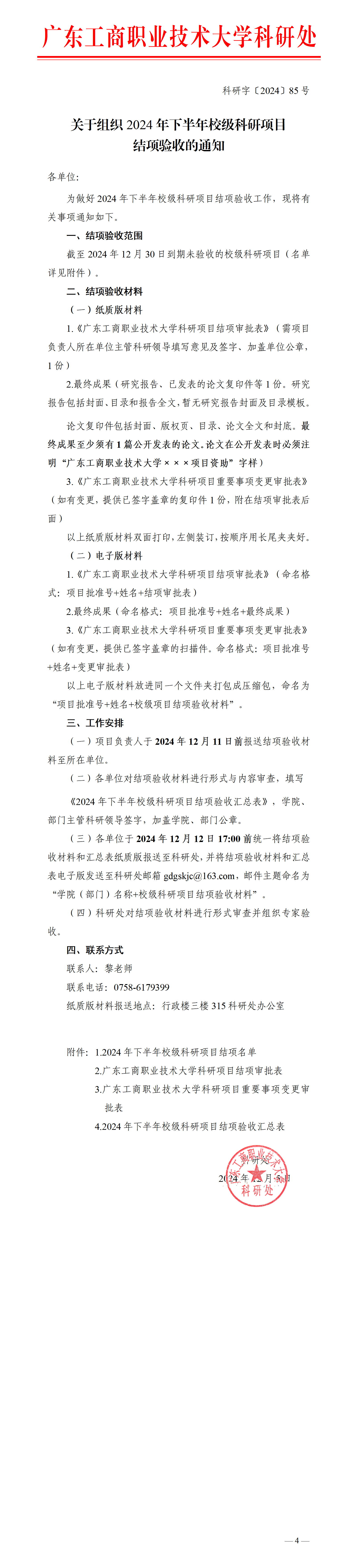 关于组织2024年下半年校级科研项目结项验收的通知(科研字〔2024〕85号)